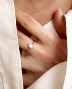 Une bague illustrant la sensualité et la modernité. En son centre, un zircon taillé en poire capte la lumière comme une goutte de clarté suspendue. Fine et délicate, elle se porte comme une déclaration : celle du désir, de l’éclat, de l’essentiel.