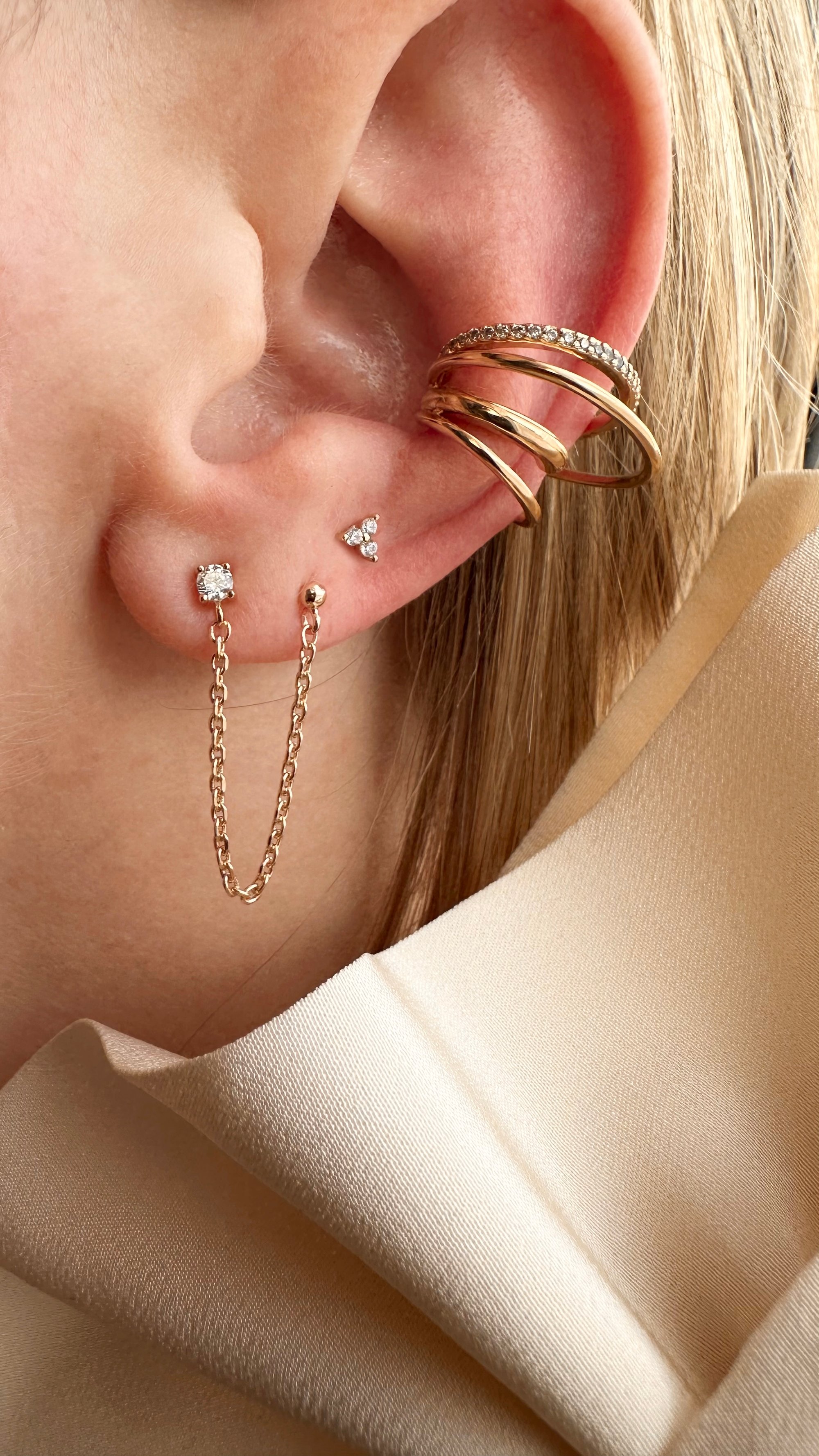 Double boucle d'oreille composée de petits zircons blancs.