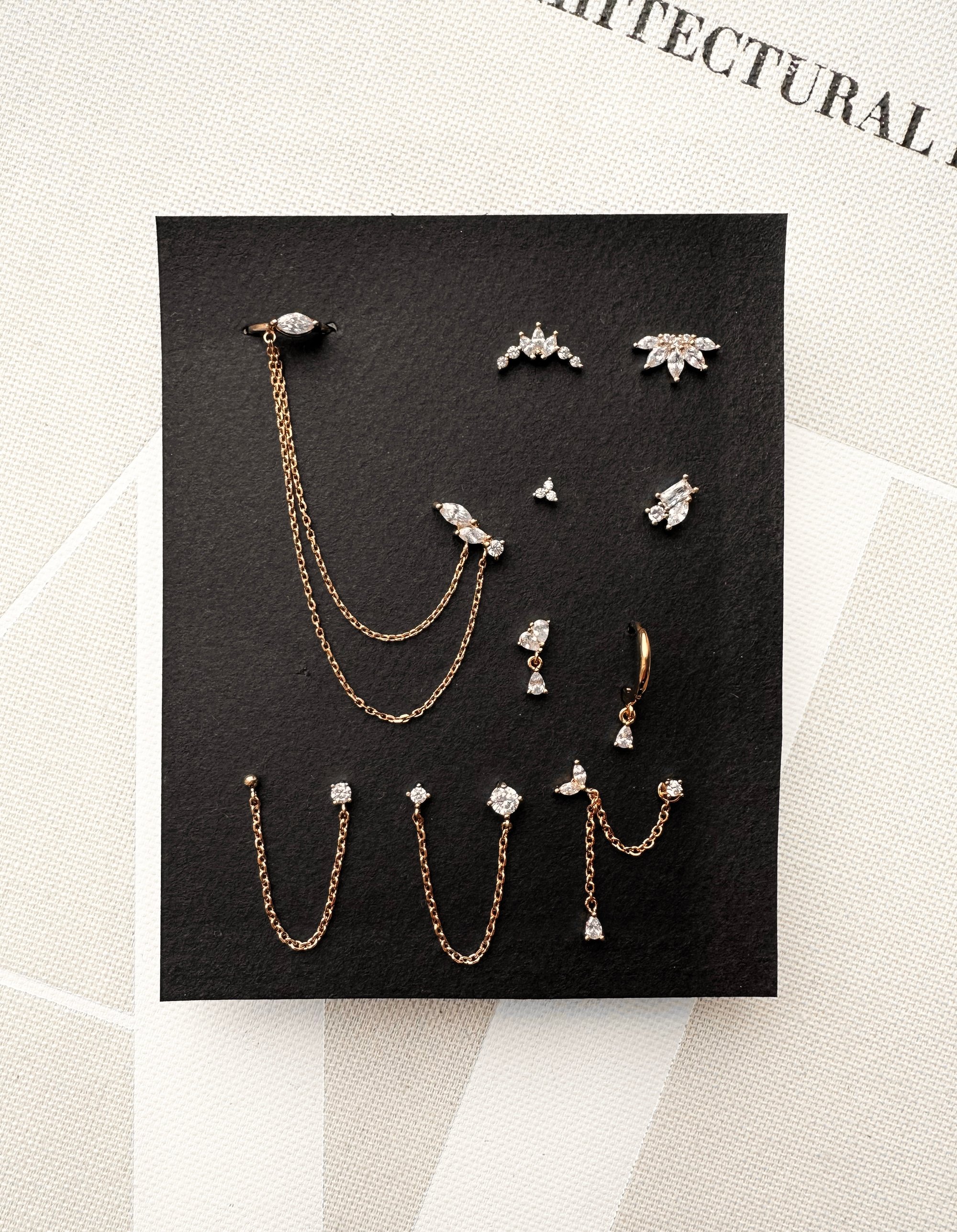 Boucle d'oreille et bague d'oreille composée de petits zircons blancs.