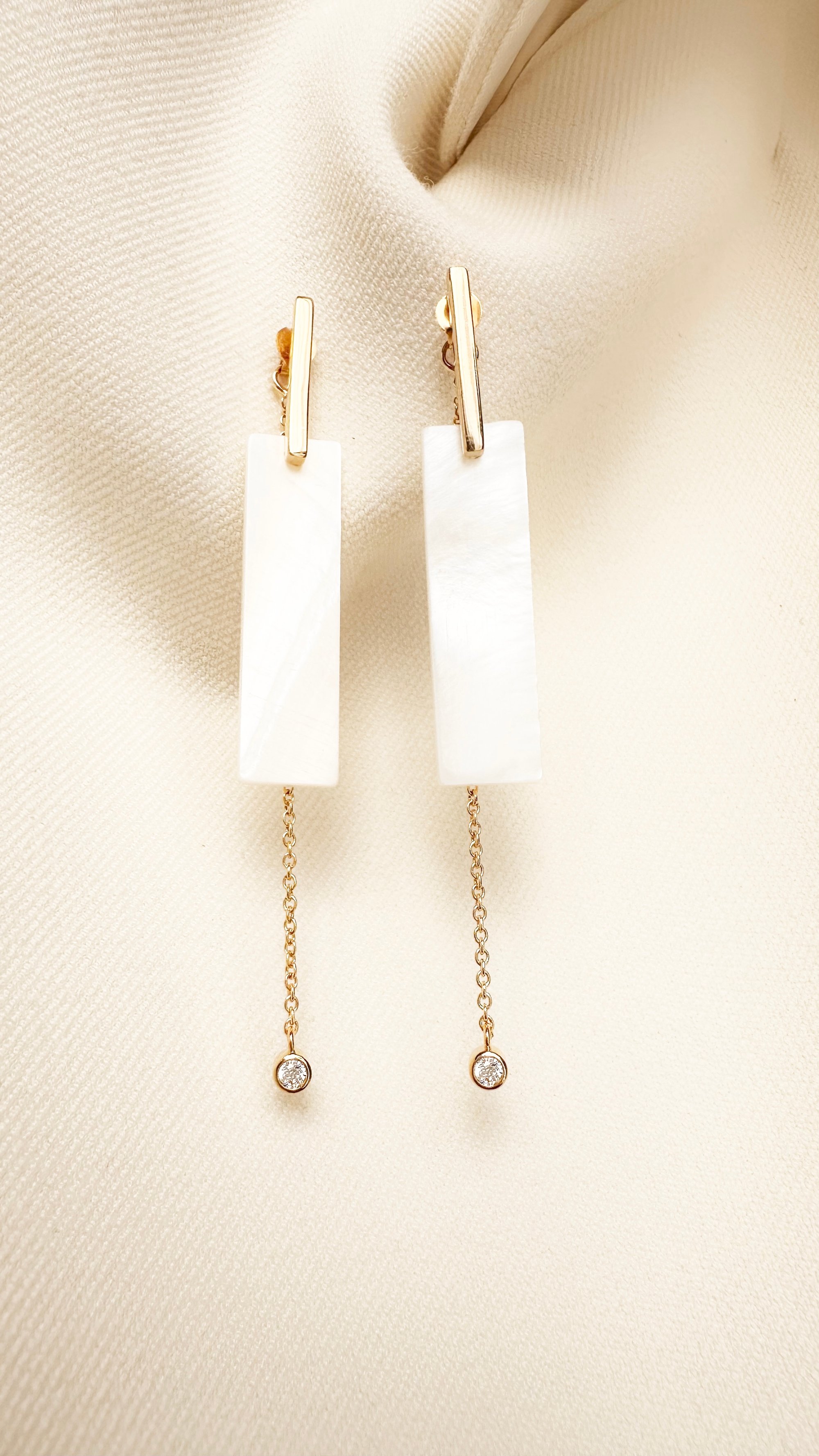 Boucles d'oreille en nacre, zircon et plaqué or.
