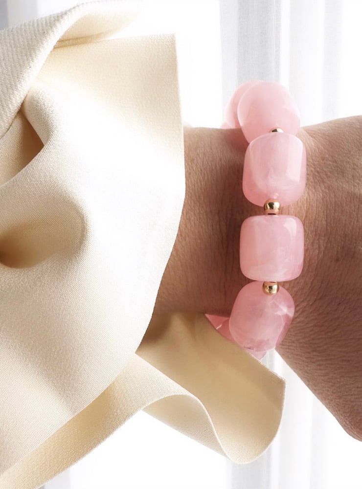 Bracelet en perles roses et plaqué or.