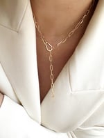 Collier en maille oversize, reglable à la longueur souhaitée.