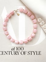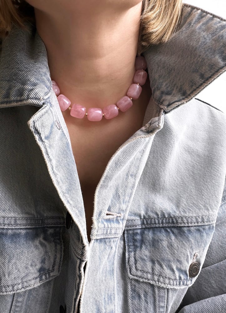 Collier de perles roses en résine et plaqué or.
