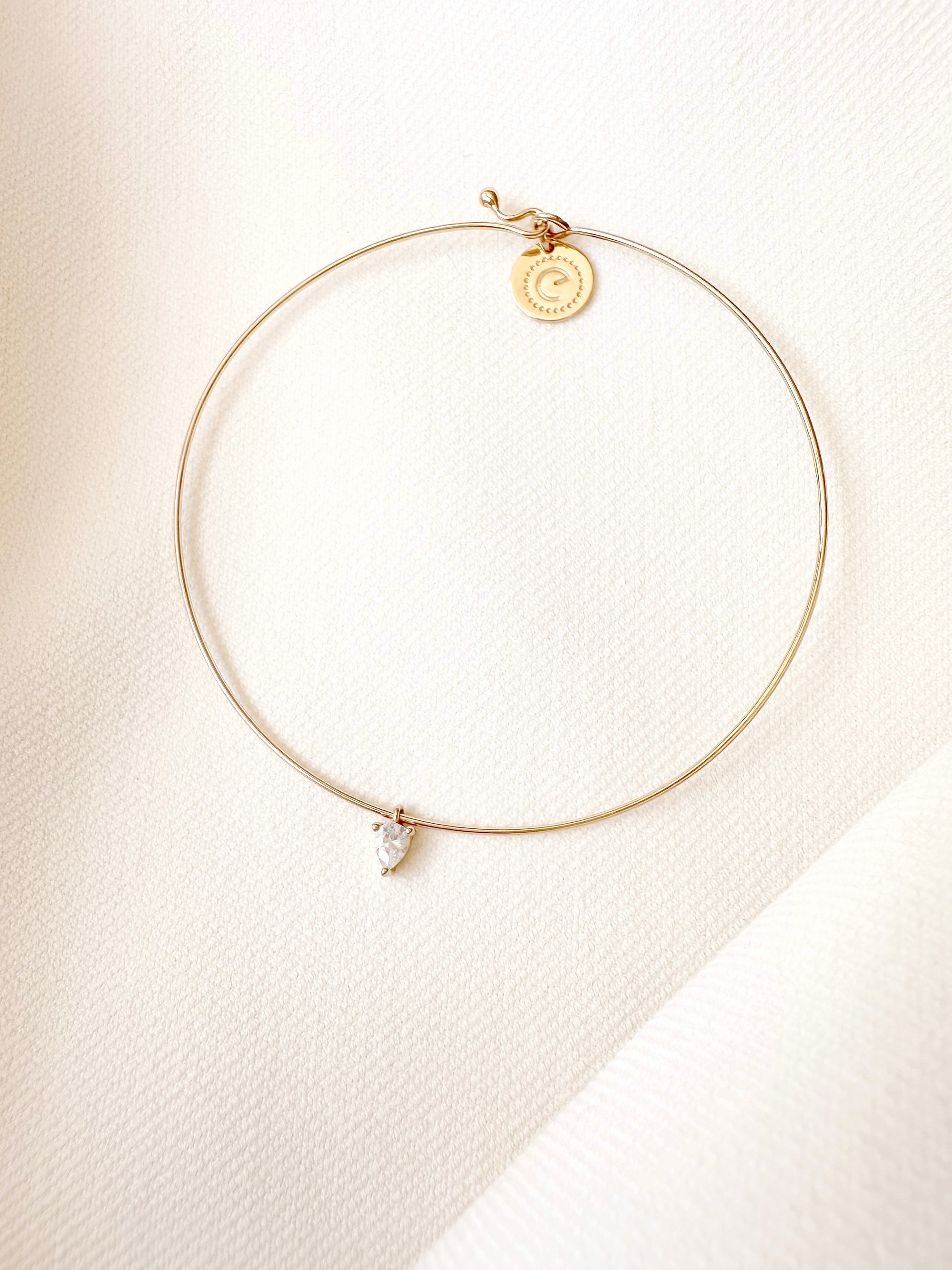 Jonc avec pendentif poire en zircon.